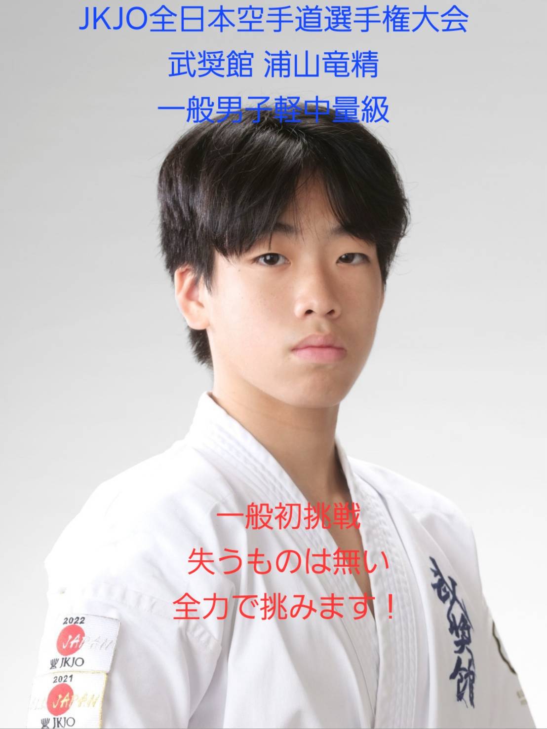 早急に道着姿・胸カラー写真を1枚(パスポートサイズ)提出してください。